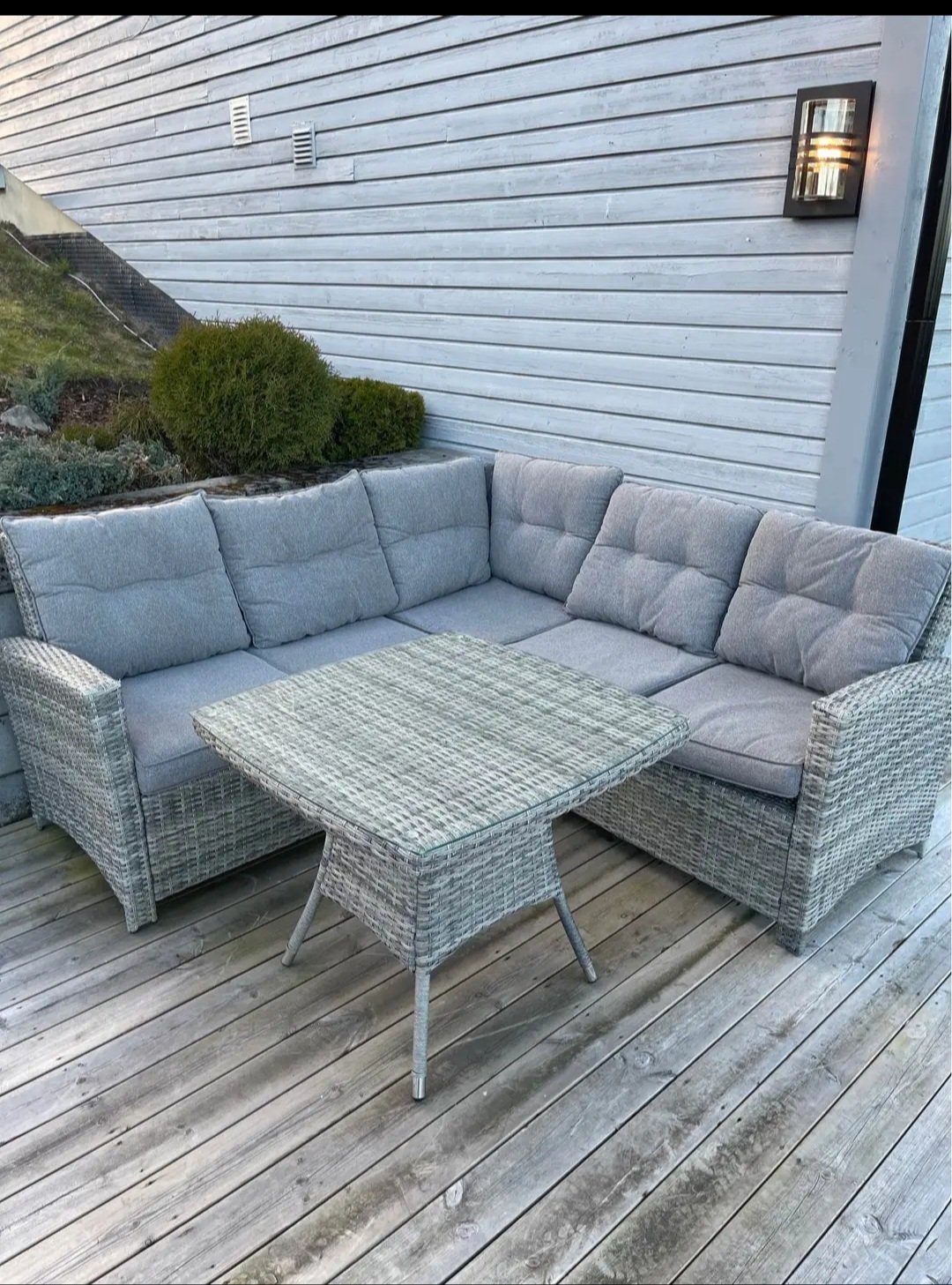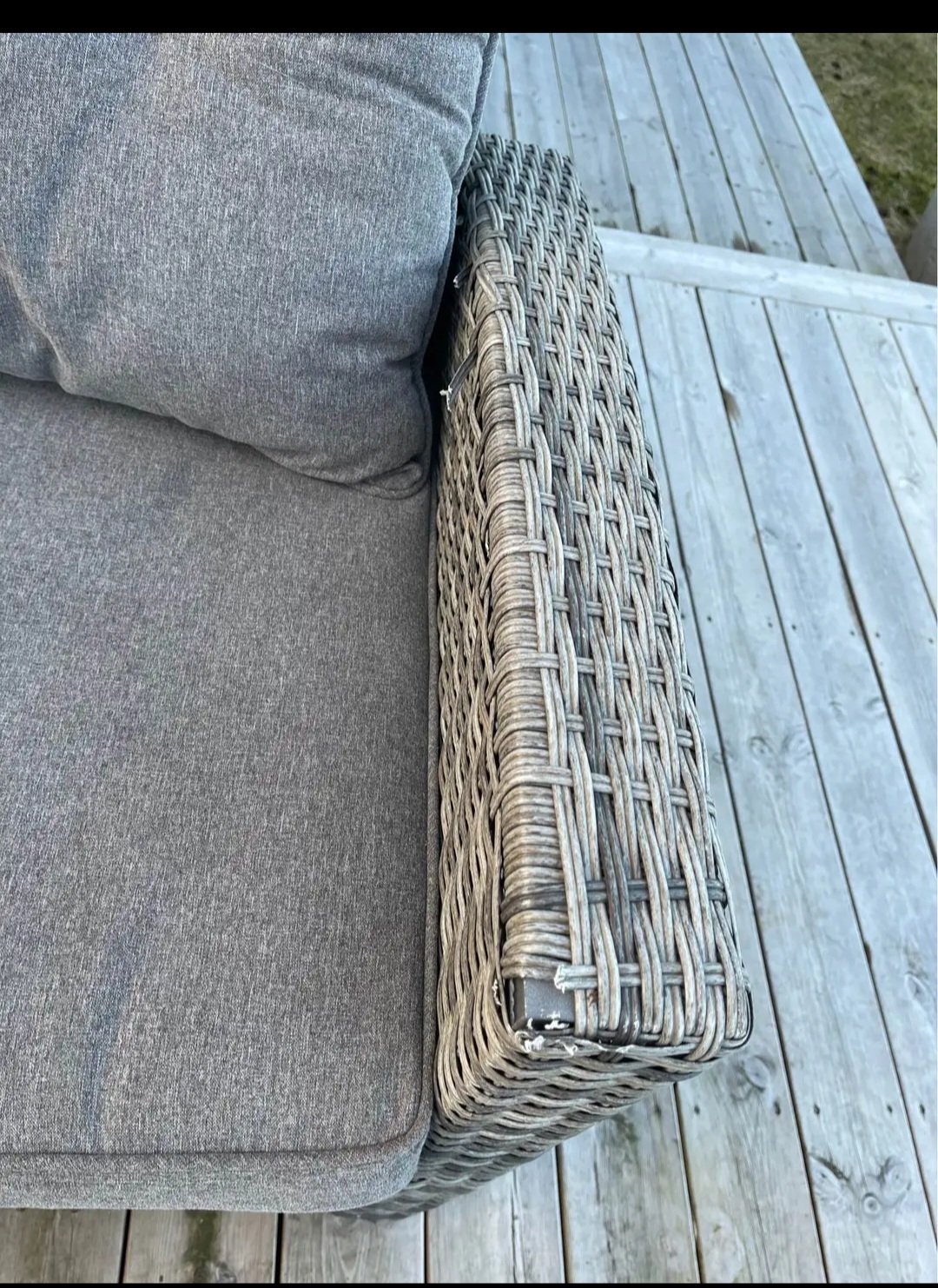 Sofaen har kunn en liten skade på ene armlene ellers god stand